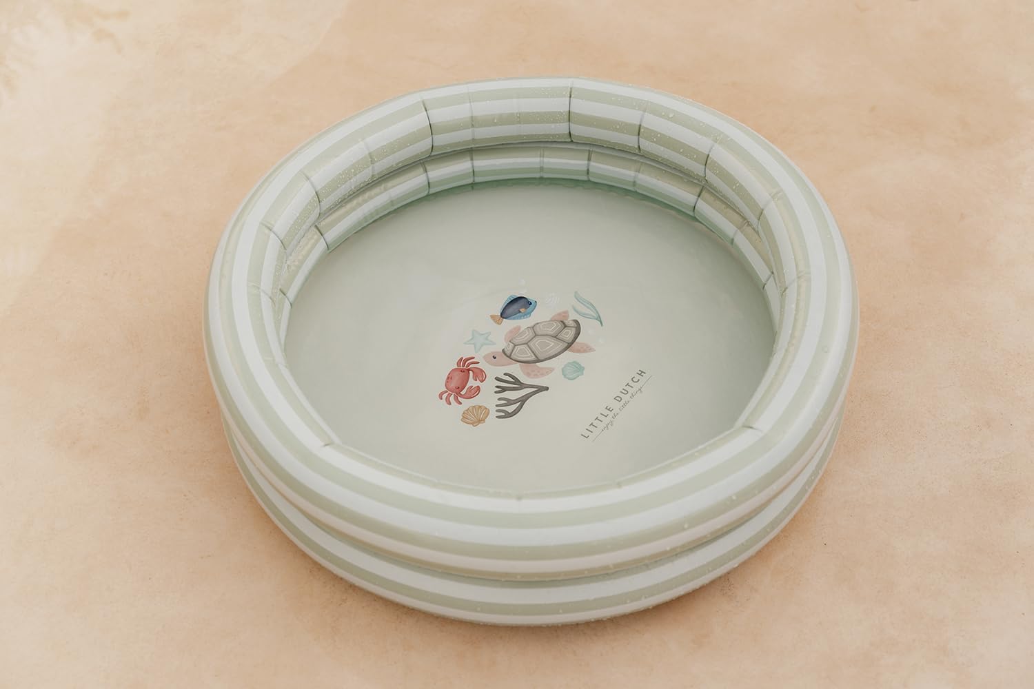 Ready for a lot of water fun? On hot days, the Fresh Greens pool can be easily inflated and set up in your garden. With a layer of water in it, your child has a beautiful pool in which they can cool down. Lots of fun is guaranteed! The green and white striped pool is decorated with figures from the sea. The pool has a size of 80 cm. Material: PVC. Dimensions: 80 x 80 x 17 cm. Recommended age: from 2 years