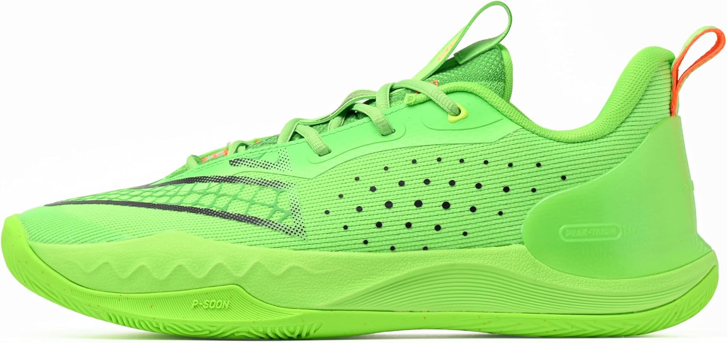 Big Triangle Basketball Shoes featuring a large PEAK logo The "TAICHI" is a flexible material that changes the nature of the material depending on the quality of impact, and the "P-SOON" on the foot is equipped with a shock absorbing material "P-SOON" on the entire midsole, and the "Ultra Light" material and a special shape of carbon nylon TPU. These basketball shoes are made using the highest grade sole that uses PEAK's cutting-edge technologies. The large TPU sole holds your foot firmly in place for stable play. Intricately woven with synthetic fibers these high-strength nylon laces hug your foot with optimal strength in every location.