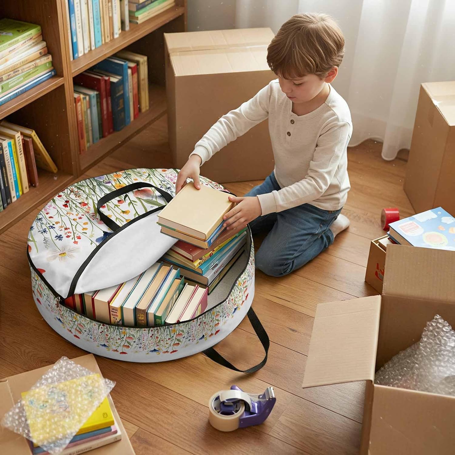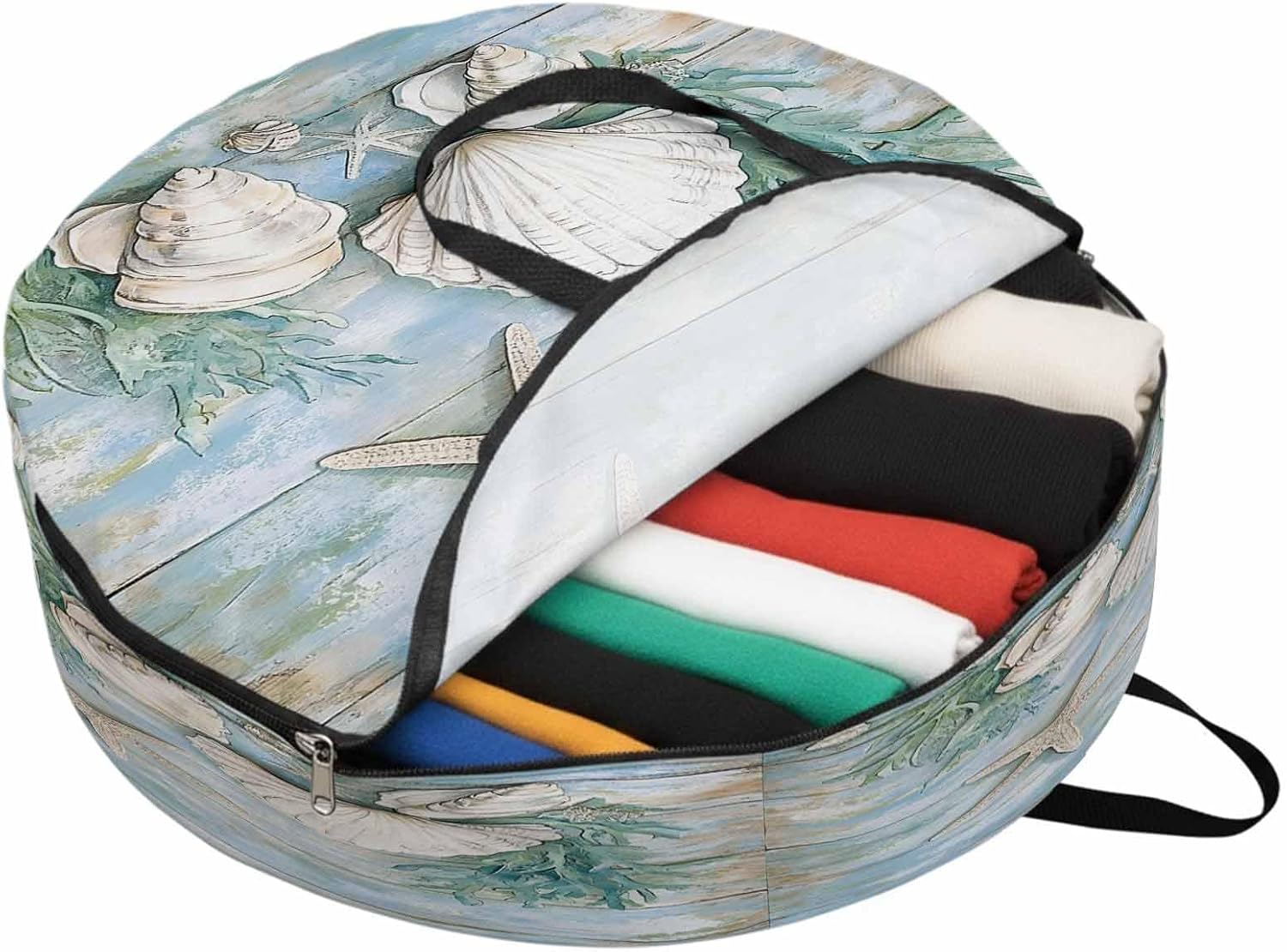 Reclaim Your Closet Space with the Round Storage Solution! Material: polyester Diameters: 24 inch, 30 inch, 36 inch Depth: 7 inches Package Includes: Round Storage Bag One Bag, Endless Possibilities: Whether you are swapping out your summer wardrobe, moving into a new dorm, or packing away holiday decorations, this bag has you covered. The circular design is uniquely suited for: Bedding: Comforters, quilts, sheet sets, and oversized pillows. Clothing: Winter coats, sweaters, and bulky ski gear. Home Decor: Holiday wreaths, garlands, and floral arrangements. Outdoor Gear: Camping blankets, sleeping bags, and beach towels. Dual Zippers: The high quality double zipper design allows the closet organizer to open wide from both sides, making it effortless to load and unload even the bulkiest comforters or wreaths. Reinforced Handles: Sturdy, reinforced handles are securely stitched to provide extra strength and a comfortable grip when carrying heavy loads or pulling the bag from under a bed. Clear Label Pocket: A transparent built-in label holder allows you to quickly identify the contents of each bag without ever having to unzip it, keeping your storage perfectly organized.